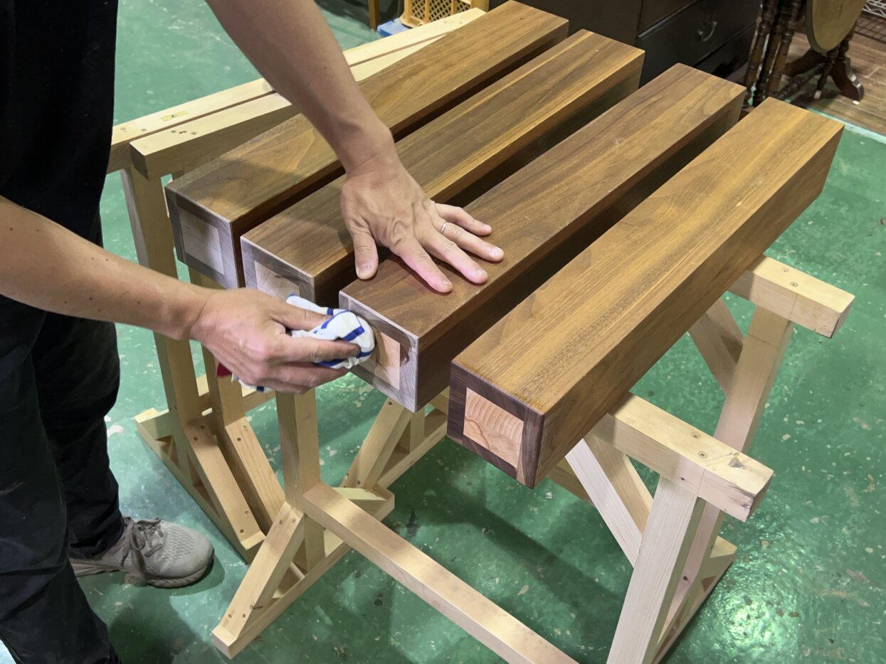 今回はテーブルの高さを変更したいとのことで、脚のカット修理をご依頼いただきました。