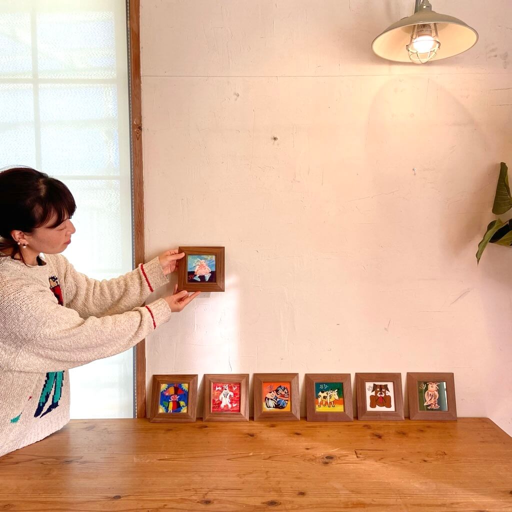 だからこそ、裏から一気に描くガラス絵のスピード感と勢いに、のびのびとした楽しさを見出したのかもしれません。
